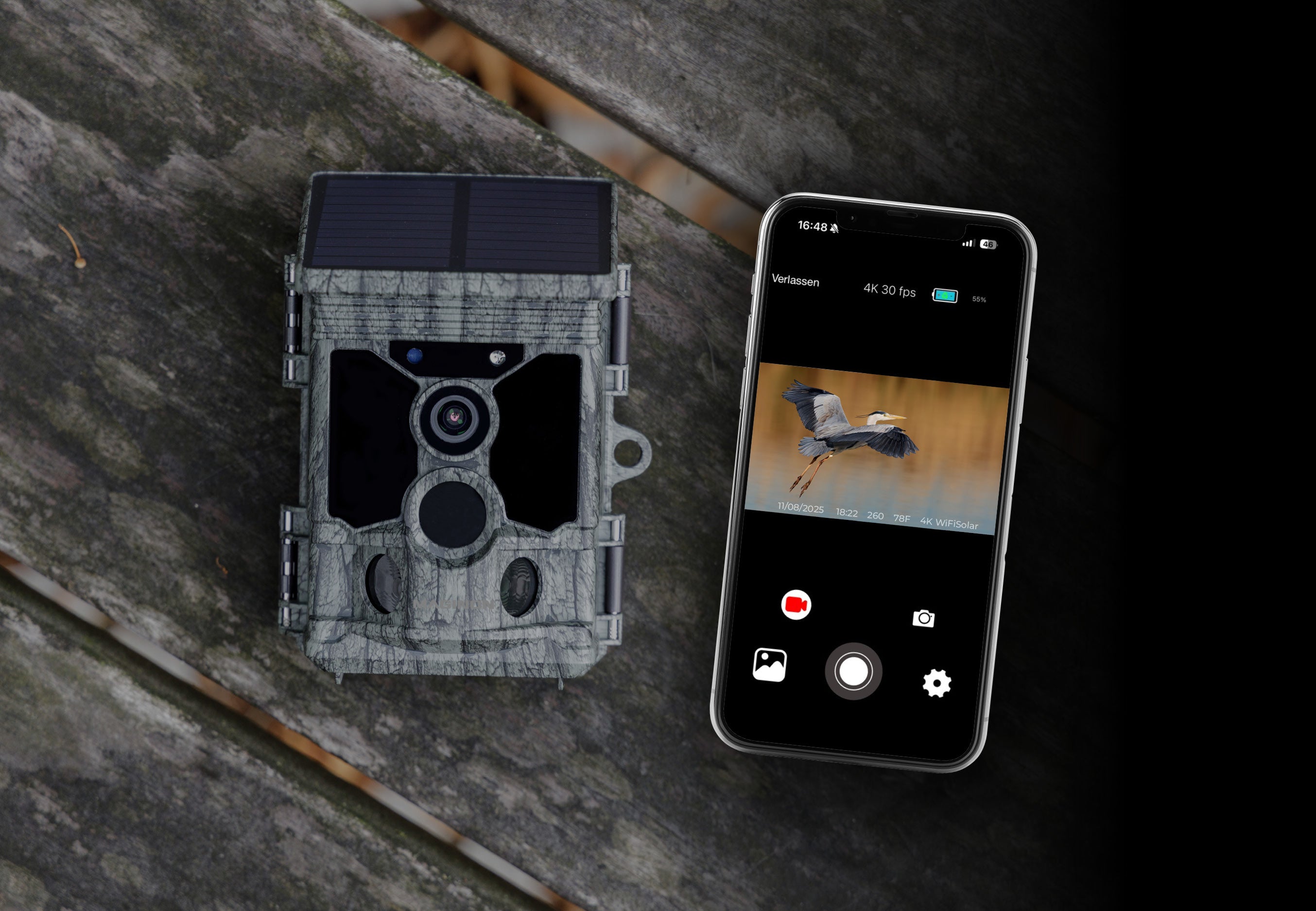 The Wildlife Camera 4K WiFi Solar combines state-of-the-art camera technology with smarter operation and sustainable energy supply. It is ideal for wildlife observation, area patrols, or discreet property surveillance – and delivers razor-sharp images, many practical features, and virtually maintenance-free operation.