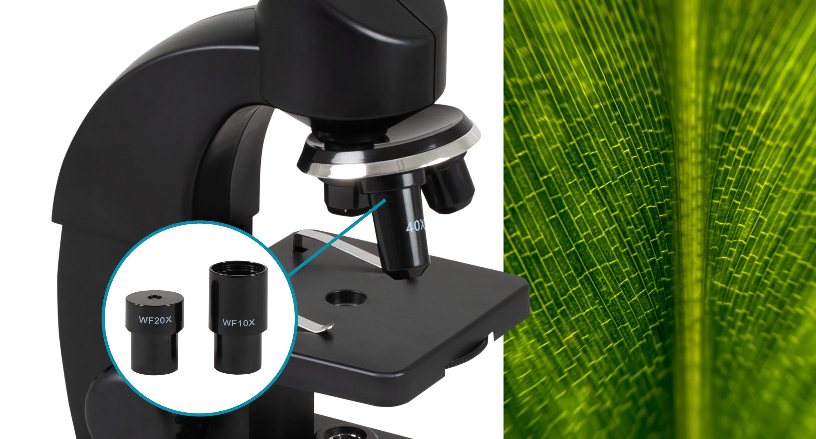 Vielseitige Vergrößerung: 2 Okulare und 4 Objektivlinsen für 40- bis 800-fache Vergrößerung