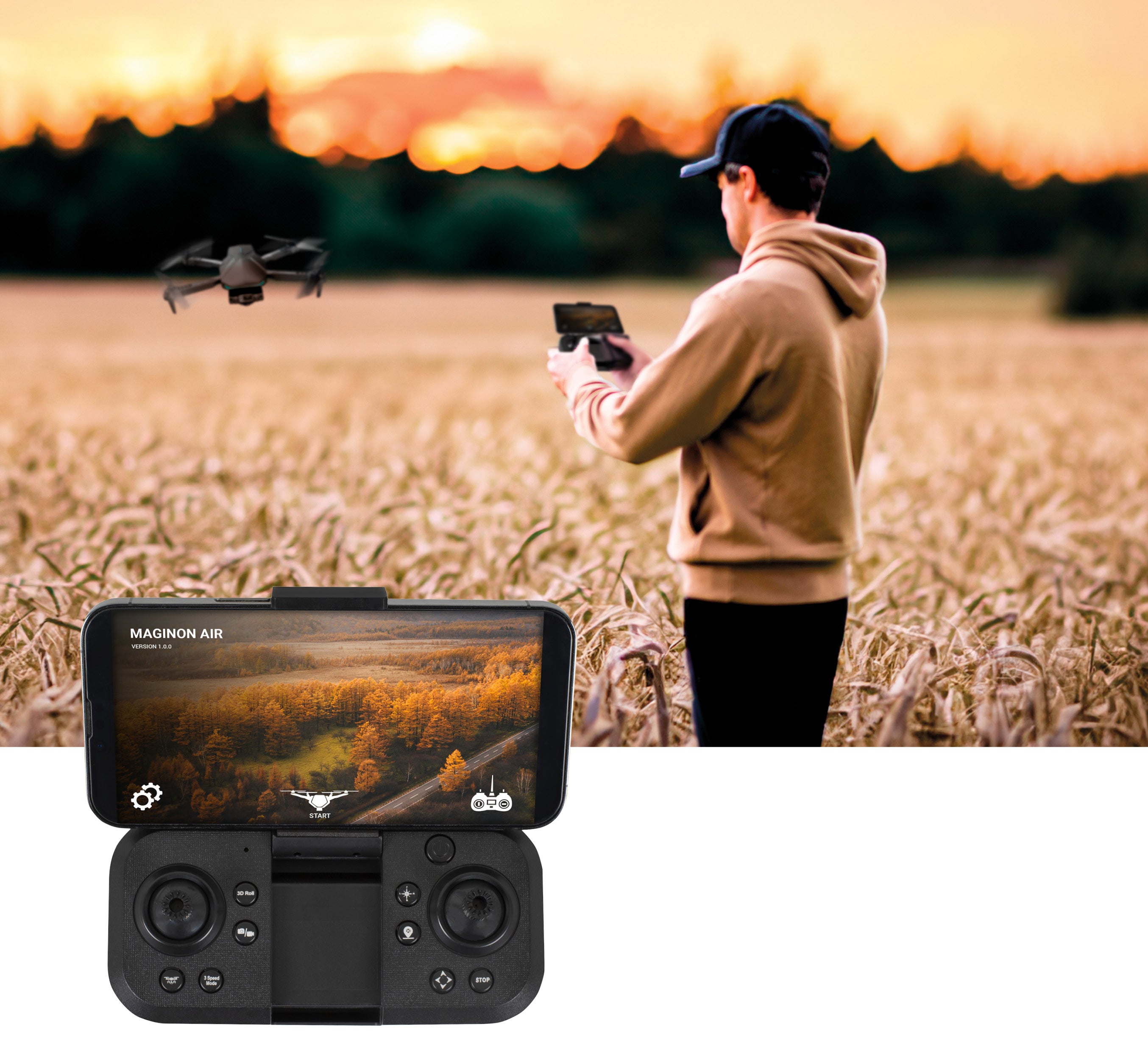 Steuern Sie den QC-720SE WiFi ganz einfach über die mitgelieferte Fernbedienung mit integrierter Smartphone-Halterung, in die Sie Ihr Smartphone einlegen können. Die Live-Übertragung des Kamerabilds über WiFi ermöglicht es Ihnen, Ihre Flüge in Echtzeit zu verfolgen und die aufgenommenen Bilder und Videos sofort auf Ihrem Smartphone zu speichern. Diese smarte Bedienung macht das Fliegen intuitiv und unkompliziert.